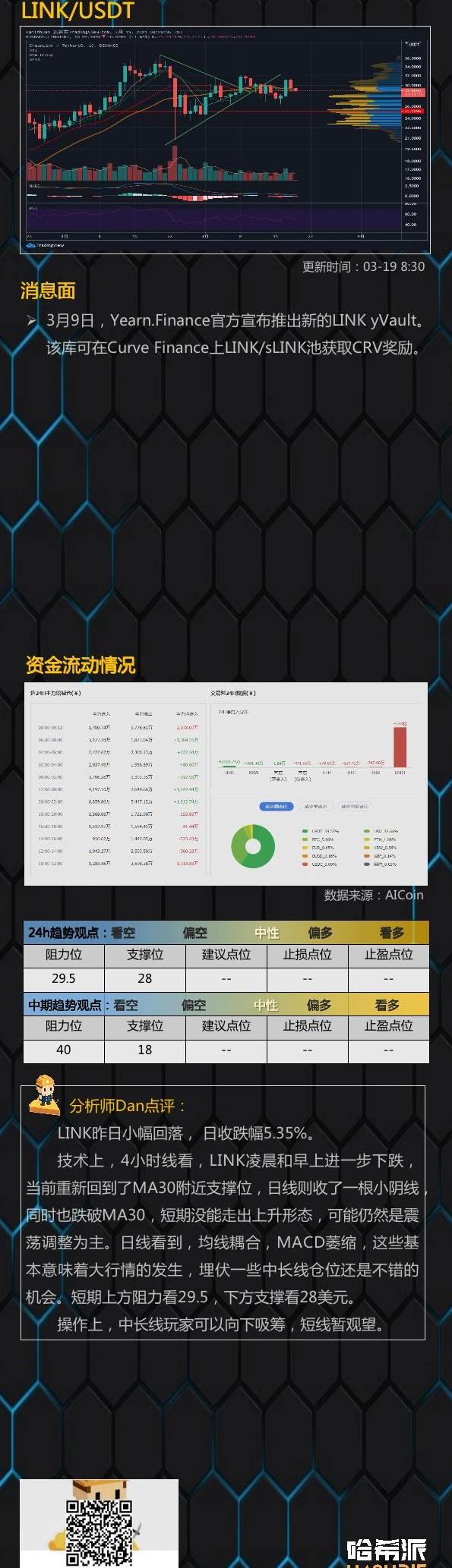 昨日晚至今,BTC在小幅反弹后持续下跌, 最低至8600美元,成交量出现放大。根据火币交割合约数据,BTC季度合约成交额大幅上涨,持仓量保持上涨趋势,精英多头占比稳定,季度合约处于贴水状态。市场整体情绪较低,但可注意到近几天下跌行情持仓量处于持续增长状态,投资者需注意风险,不宜追涨杀跌。
