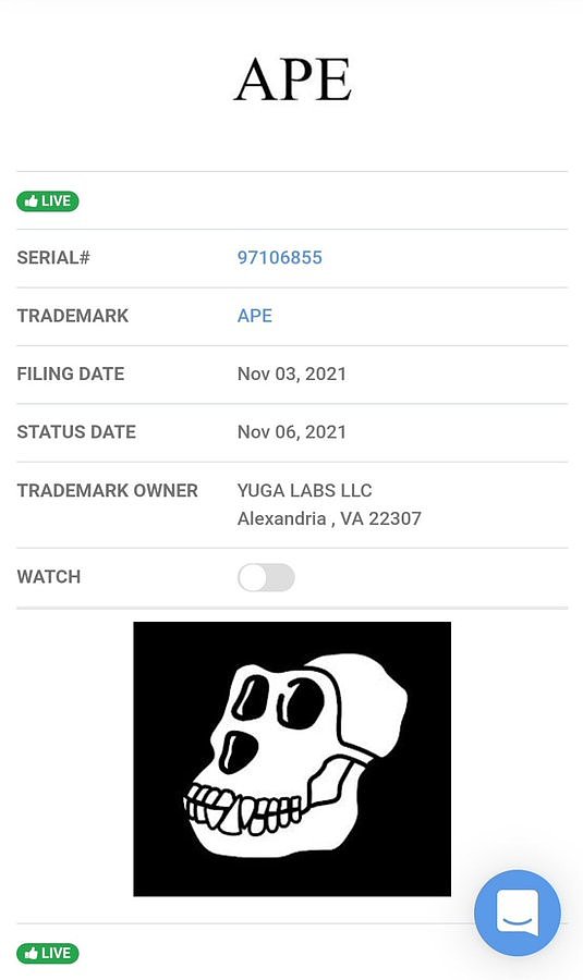 无聊猿的创造者 Yuga Labs? 已于 11 月 6 日向美国专利商标局提交了“APE”一词的商标申请,用于加密货币、网络游戏、计算机软件平台和定制区块链的开发软件。
