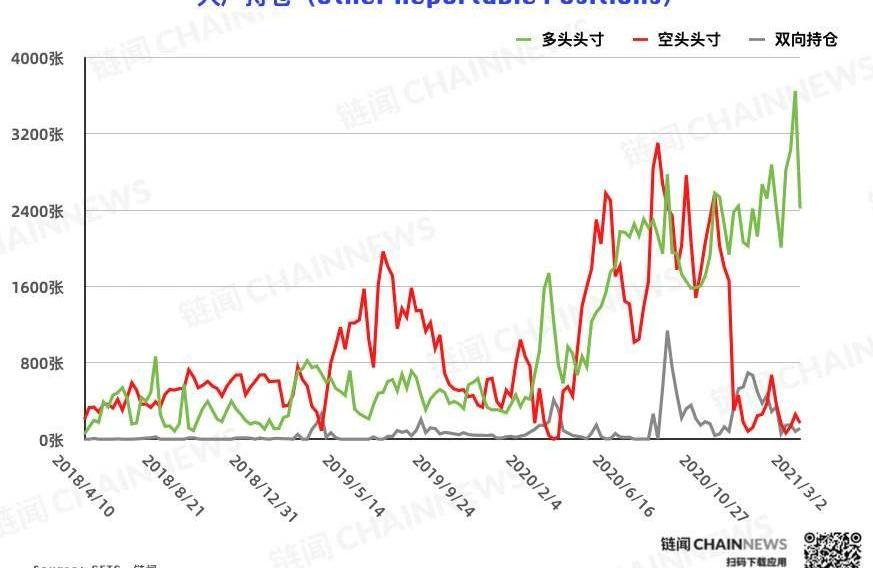 编者按:本文来自链闻ChainNews,星球日报经授权发布。3月6日,CFTC公布了最新一期CME比特币期货周报,最新统计周期内BTC价格近乎停滞,周内行情虽然有所反复,但是最终整个统计周期内价格实际波动幅度不足100美元,行情在上一统计周期出现急跌跳水过后跌势告一段落,不过价格也并未能够取得可观的价格上涨,在急跌过后的横盘对于市场情绪的偏空影响持续发酵。总持仓数量在最新一期数据中自10572张骤跌至8068张,该数值创出近21周新低,行情出现大跌过后各类账户纷纷急于进行减仓风控,市场恐慌氛围迅速集聚。