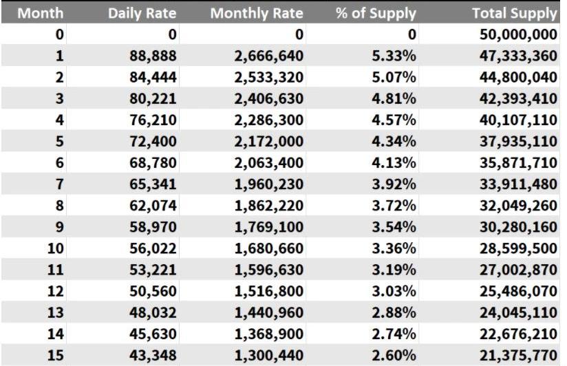 从官方披露的代币经济模型来看,A5T的总供应量共5000万枚,目前流通量大约有700万枚,具体构成是用于营销/商业拓展的200万枚和公募销售释放的500万枚,主要流动平台为去中心化交易所Uniswap,并将于3月1日上线MXC、Gate、Hoo等中心化交易所。Alpha5团队向Odaily星球日报表示,占A5T总供应量26%的团队及私募投资人份额将锁仓545天,直至2022年的2月2日;占A5T总供应量60%的代币则将通过「交易即挖矿」的模式向平台用户进行分配。根据白皮书介绍,3月1日起,Alpha5将会通过「交易即挖矿」的模式进行A5T的分发,首月每日将释放88888枚代币,此后逐月递减,具体分配的参照指标是参与交易挖矿的用户当日产生的手续费比例。