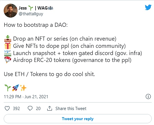 贡献者 Jess Sloss 在 Twitter 上总结了一个 DAO 的发起过程: