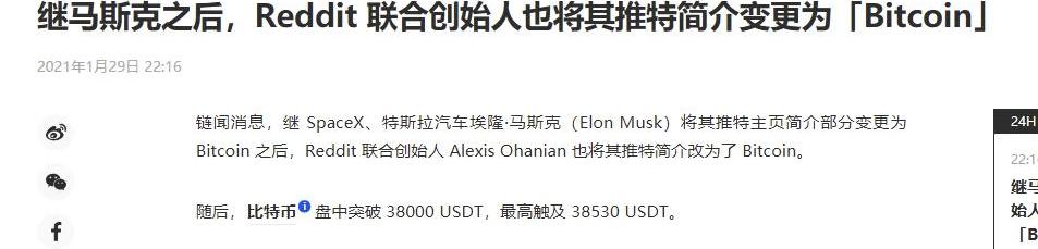 此前,马斯克的个人推特简介为Dogecoin前CEO。2020年4月,马斯克在推特表示狗狗币可能是我最喜欢的加密货币,它非常酷,7月他在推特上发布一张图片,配图显示Dogecoin沙尘暴席卷了一个被标为全球金融体系的地区。马斯克这一改推特简介,直接刺激了BTC的暴涨。全球大网红,前世界首富的力量真是强大,这是要把BTC带进火星吗,成为火星流通货币么。
