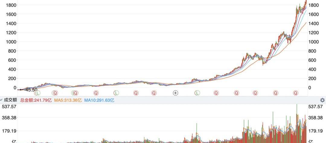 这些据Glassnode的数据显示,当前仅有420万枚比特币处于持续流通状态,而且很明显,自进入2020年后,流通比特币的数量不断降低,而随着实际流通量的降低,比特币也在水涨船高。总结,疫情和全球大放水,美元无法承担价值锚、黄金都在美国保险箱的大环境下,让全球资本开始认真思考比特币之前剧本的可实现性,进而开始大批量成为市场的参与者,并随着不断买入,逐渐掌握了定价权,目前就是共识不断收敛的过程,价格也开始走向茅台线。总而言之,这次剧本对了,人也对了,比特币走向茅台线的必要条件都有了茅台线什么时候瓦解呢?这题我会。对于被核心资产抱团困扰很长时间的人来说,太熟悉不过了。答案是,涨太多永远不是抱团瓦解的理由,抱团瓦解只可能是:1)共识被证伪了,共识从收敛变发散;2)有更有赚钱效应的去处。针对1),目前比特币的剧本已经确定了,参与玩家也确定,而且正处于一个共识收敛的过程,表现形式就是抱团过程。只要共识收敛没有结束,涨幅就不会轻易结束。而只要世界还处于“百年未有之大变局”、美元丧失价值锚的大环境下,比特币的故事就很难被证伪。针对2),比特币现在的市值6200亿市值,市值刚超越台积电,但也仅是一个科技巨头公司的市值,和其价值存储---数字黄金的故事相比,还有10多倍的空间,要大面积超过这种赚钱效应其实挺难的。综上,短期比特茅的共识很难瓦解,即使暴跌,也是因为涨太快or美联储退出宽松了,可以修复斜率,而不是因为共识瓦解。短期内还不是谈比特币茅台线瓦解崩盘的时候。操作上,对茅台线最保险的操作方法就是耐心持有现货当个hodler或者买入低倍率的杠杆代币,切记头铁做反向和短期高杠杆。慢就是快。何况比特币已经不慢了。