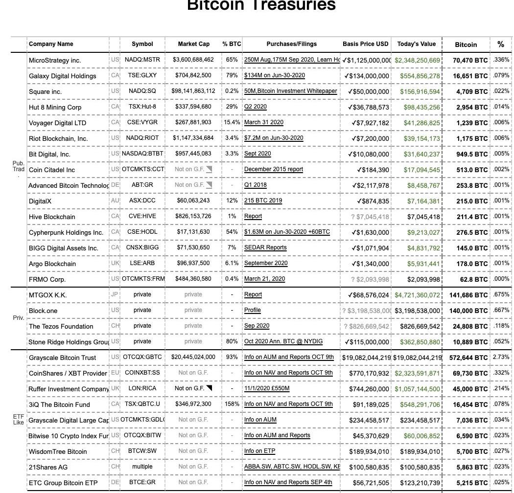 第一次,2008到2014年左右,比特币刚出现,比特币到底是什么还没有太强的共识。主要是散户群体的资金炒作为主,盘子也小。价格走势体现了很强的资金盘的特征。即:剧本还没写好,人也不对。第二次,2016到2017年底,比特币已经走过了快10个年头,特别是经历了2017年的94以后,比特币显示出极强的反脆弱特征和韧劲。这时候,比特币到底是什么的各种共识剧本已经有体现了。可惜,此时持仓的还是散户群体居多,共识有,但共识是弱共识,不团结。17年底于是加速即崩盘。这次是剧本对了,但人不对。只能换个姿势再来一次。第三次,2019年至今,比特币度过了新的减半周期,和第二次区别在于哪儿呢?区别剧本在大环境下得到了加强,突如其来的疫情和全球大放水,美元的资产锚定地位岌岌可危,黄金锁在美国保险箱里。都给了比特币的抗通胀和价值存储故事神助攻。另外就是,这次人终于对了。来看看这次的做多队友都是谁?
