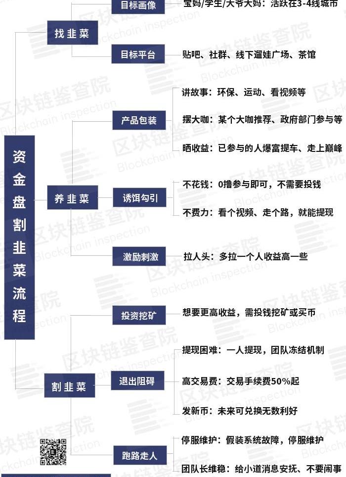 别看鉴叔列了这么多项目,好像资金盘很复杂,其实大部分资金盘割韭菜的模式都差不多。我总结了一张图,这里涵盖了资金盘割韭菜的步骤流程,一旦发现某项目遵循这个套路,就要警惕了。