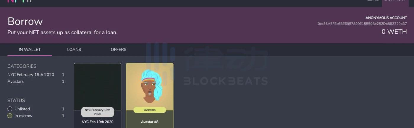 编者按:本文来自区块律动BlockBeats,Odaily星球日报经授权转载。NFT的用途有哪些?目前为人熟知的大概是游戏道具和加密艺术,其次是在保险、域名等领域的应用,除此以外,NFT作为「代币」,在金融领域有没有应用呢?其实,NFT已经可以作为抵押物进行借贷服务了。近日,一NFTfi用户就以CryptoKitties第20号创世猫作为抵押,借出2.5万枚DAI,约42.3ETH。NFTfi简介
