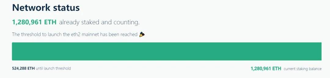 而在以太坊2.0上线之后,以太坊2.0Staking的进展也是飞快,目前以太坊2.0存款合约内已经存入了128万枚ETH,增长迅猛。持币者已经纷纷开启了Staking挖矿模式,PoS挖矿时代正式来临。