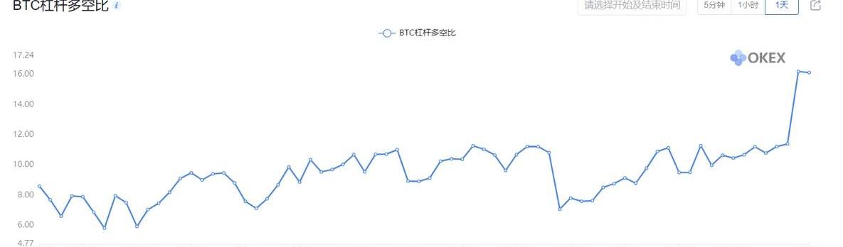 Source:bybt根据bybyt数据显示,目前比特币信托基金Grayscale持仓量为55.35万枚BTC,占比特币总流通量的2.98%,虽然持仓量持续增加,但是上涨速率有所减缓,一旦上涨趋势逆转,目前多头的持仓将变成潜在空头,类比黄金SPDRGoldTrustETF9月到10月的持仓量变化;从现货融资融券的数据来看,杠杆多空比较上周上涨60%,说明目前多头情绪较重,注意风险。