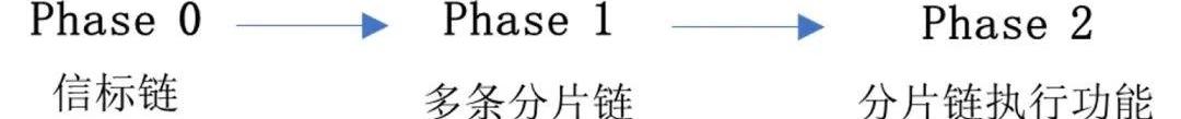其中,Phase0的主要任务是推出以PoS为共识机制的信标链。信标链的主要职能包括希望成为Eth2的验证者参与到质押系统,代替矿工的角色而成为新链的构建者与验证者;以及完成分片链之间的通信交互,并协调各分片链共同打造一个区块链系统。按照最初的规划,信标链的推出对于大多数用户不会产生直接影响,因为它不会直接处理交易、执行智能合约或支持去中心化应用。这样设计的初衷是为了确保,Eth2不会扰乱现有的Eth1已经形成的生态。在Eth2的性能被反复验证前,现有的以太坊网络将继续存在,与Eth2并行运行。在Eth2的发展过程中,现有网络也将不断升级,直到Phase1.5实现Eth1和Eth2的合并。也就是说,短期内Eth1和Eth2将会并存,PoS和PoW两种机制也将在以太坊网络并行。Phase1则将主要解决以太坊的交易拥堵问题,提升可拓展性。具体来说,就是在这一阶段正式引入分片链,每条链之间相互独立,通过信标链实现交互通信。理论上,64条分片链一次性可以处理64个区块,相较当前一次只能打包一个区块的以太坊,将大幅提升交易效率,缓解网络拥堵问题。Eth1也将在这个过程中并入Eth2,并作为64条分片链中的一条独立运行。但由于Eth1与其他新的分片链存在本质不同,其中牵扯到包括共识机制转变、已有数据与应用的迁移等诸多问题,所有这一过程也被称为Phase1.5。Phase2是Phase1的延续,将继续执行分片机制。各条分片链在这一阶段开始正式执行各项功能,并全面引入智能合约和各类应用,实现Eth2的最初设想。这一路线图中,Eth2最终将形成由信标链敲定验证和完成分片间通信,由分片链并行处理交易的系统,实现交易处理与共识验证的松耦合。但在11月18日以太坊基金会团队第五次AMA上,ETH2.0的路线图发生了变化。其中值得关注的包括:暂时不再强调Phase2的重要性,信标链将在Eth1和Eth2合并后具备执行功能,其区块中将直接包含交易。变化后的路线图为: