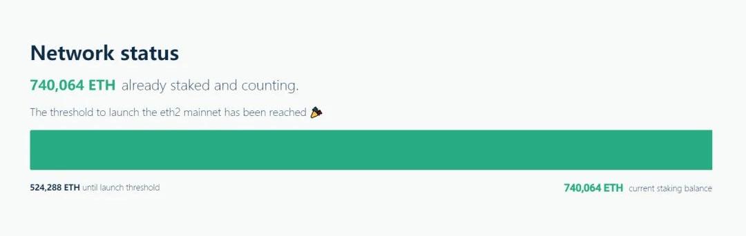 编者按:本文来自WebX实验室Daily,Odaily星球日报经授权转载。此前我们还在担心ETH2.0的存款目标无法在12月1日前达成,没想到11月23日一天,存款合约内的质押量就暴增了90%。截至北京时间11月26日,存款合约地址中质押的ETH数量已经达到了74万个ETH,远超最低门槛524288个ETH。