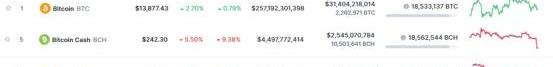 BTC、BCH、BSV当前市值排名2017年8月1日,经过长达两年的争论,BitcoinCore和Classic开发组彻底闹掰,催生出支持大区块扩容的比特币现金。在比特大陆强有力的支持下,BCH的网络和社区快速增长,刚诞生不久便跻身主流币行列。一年之后扩容矛盾再起,澳本聪CraigWright公开对BitcoinABC版本提出抗议,随即宣布自立门户,于2018年11月分叉出新链BSV,并与比特币现金胶着至今。