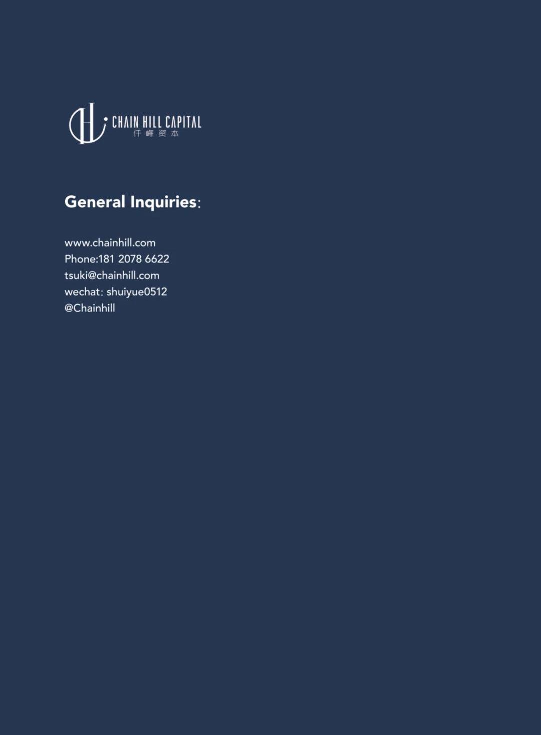 ChainHillCapital简介ChainHillCapital自2017年成立起就专注于全球区块链项目的价值投资,打造了早期、成长期的股权投资以及AlphaStrategy、BetaStrategy的加密数字资产投资矩阵,搭建了完善的全球资源关系网络,战略布局芝加哥、纽约、东京、北京、上海、深圳、香港、厦门等城市节点。拥有丰富的海外投资机构、全球优质项目资源库,是一家国际化的区块链风险投资基金。以多文化背景的专业团队为支撑,核心部门——投研部、交易部、风控部成员均来自于海内外知名高校与机构,拥有扎实的金融背景与卓越的投研能力,具有敏锐的市场感知能力,高度敬畏市场与风险。投研部通过将严谨的基础研究与数学、统计模型相结合得出“PureAlpha”、“SmartBeta”等投资策略,即将对外输出机构级的研究报告与项目尽调报告。