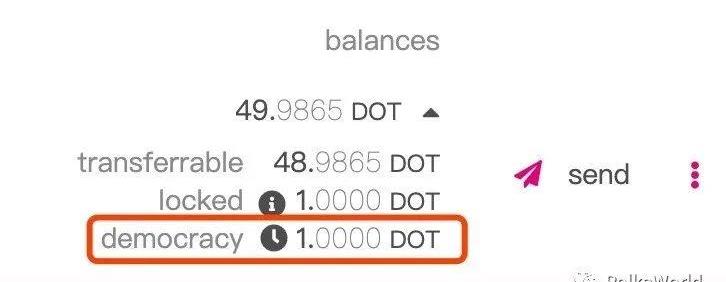 如果有的话,点击“send”右边的三个小点点,选择"Clearexpireddemocracylocks"就可以解锁因投票锁定的DOT了。正文部分就到此结束了。其实我在写教程中的过程中自己也觉得,这套投票的规则其实是比较复杂的,尤其是对首次使用来说,可能不是很友好,可能大家也会有类似的感觉。不过Polkassembly的诞生本身就是一次进步,我们相信未来Parity和社区会不断开发更多好用的工具来降低参与波卡治理的门槛,我们PolkaWorld也会继续科普治理相关的知识,让更多人能参与到波卡的民主治理进程中来。欢迎学习Substrate:https://substrate.dev/关注Substrate进展:https://github.com/paritytech/substrate关注Polkadot进展:https://github.com/paritytech/polkadot
