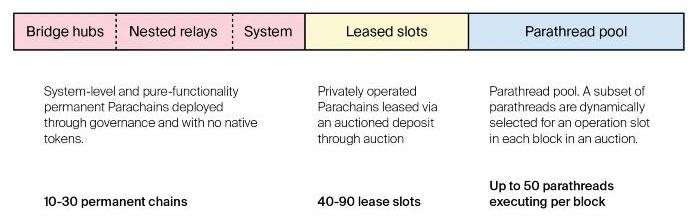 图片来自:PlasmNetwork注:基于不同的区块生成逻辑,平行链可分为同构平行链和异构平行链。同构平行链基于Cumulus共识引擎创建,与波卡有着相同的区块生成逻辑,相互之间可直接交互;异构平行链虽然遵循不同的区块生成逻辑,但可通过「桥结构」接入,再借路中继链实现与其他平行链间的交互。平行链的运行需要消耗一定的网络计算资源,因此其数量存在上限。GavinWood今年7月在波卡中国行活动上曾表示,平行链的数量上限大约会在100条左右。对于项目方来说,需要通过竞拍的方式去租下有限的插槽,才能接入平行链。由于早期系统优化工作尚未完成,网络负荷能力有待提升,预计初期开放的插槽数量不会太多。贾瑶琪向Odaily星球日报解释称,除了参与拍卖外,一些轻量级的项目其实还可以选择其他方式接入波卡网络,比如利用平行线程,或是直接部署至某些支持智能合约的平行链上,但这些方式均需要等待平行链真正落地后才会逐步实现。注:平行线程专为那些无力承担插槽拍卖费用,或是业务模型无需长期租赁插槽的项目而设计,简单来说可以理解为“共享型平行链”,支持多个项目以区块为单位共用一些特定的平行链插槽。为什么需要拍卖「平行链插槽」?
