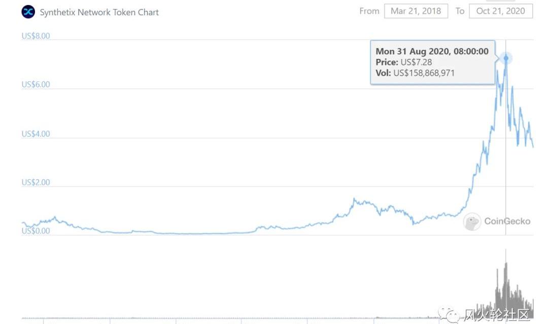 SNX8月31日的最高点是7.28U,目前是3.58U:
