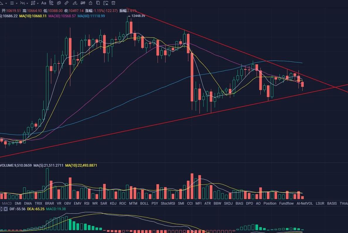 这个事情的影响还是比较大的,BieMEX当前也是全球前几的交易所,平台里锁定了19.3万枚比特币,价值20亿美元,如果一旦无法正常提币的话,那可能会出大问题。根据CoinMetrics联合创始人NicCarter发推特称,北京时间晚上9点会大致知道结果。被抓肯定不会是平白无故的,美国商品期货交易委员会周四对BitMEX加密货币交易所的四名创始人和高管提起刑事指控,指控他们未能采取足够措施制止活动。美国司法部指出,BitMEX创始人ArthurHayes、BenjaminDelo和SamuelReed,以及业务发展负责人GregoryDwyer都被控违反了《银行保密法》,违反了CFTC的规则,包括AML与KYC。而市面上当前比较权威的解读是:每年的9月30日都是CFTC和SEC的年度会计结算日所以一般在第三季度会有很多的监管动作,因为监管工作人员也要冲业绩,譬如去年EOS的罚金就是9月30号交的。而当前BitMEX的CEO也表示了,“我们坚决不同意美国政府的强硬决定以及指控。我们准备坚定地反驳这些指控”,将会和CFTC和DOJ抗争到底,后续事件估计还会进一步发酵。很多人质疑BitMEX的事件会不会影响比特币行情,甚至,将其比喻成美国版的“94”,主要原因在于,这个平台让人太过捉摸不定,“312”的时候砸盘最厉害的就是BitMEX。但今时不同往日,当初市场上的大型交易所比较少,筹码比较集中,一家大型交易所出事后就会波及整个市场,而如今OK、HUOBI、币安、Uniswap以及Coinbase等大型平台的体量均在BitMEX之上,想砸盘不是那么容易的事。不过当前各大平台的平台币多少会受影响,CFTC抓住Bitmex的主要一点是该平台面向美国人民交易,虽然该平台的注册地址不在美国,但这种把戏对于美国来说没用,不管是不是注册地在美国,不管有没有美国人的注册地址,只要确定了有美国人民参与,这点法规都有效。而其他平台或多或少有这方面的因素,所以在BitMEX出事以后,其他平台的平台币也出现了下跌。无论如何将影响降低到多小,始终是利空影响,再配合特朗普新冠事件,算是双重利空利空,当前美指期货已经在不断下跌,晚上美股开盘后,才会迎来真正的考验。总之,当前市场风险进一步加剧,持仓的小伙伴还是多多注意一下。回到行情上,昨晚到今天行情进行了两波下跌,一波是昨晚的BitMEX事件,另一波是中午的特朗普新冠事件,最低是跌倒了10400美元下方,当前依然有进一步的下跌风险。当前日线级别跌到了三角区间下轨,节奏进行的比想象中的快,走出收缩三角形的节奏可能也比原本预想中的假期八天走出来要更快一些,当前下轨支撑在10300美元附近。