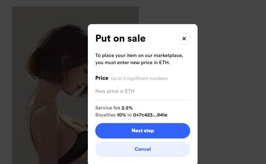价格我设置为4.99ETH,看看哪个天才独具慧眼会来买我的艺术品。然后底下可以写上自己的联系方式、网站、一句话等等,可以设置成买了之后可以看到。然后就是一步一步,设置