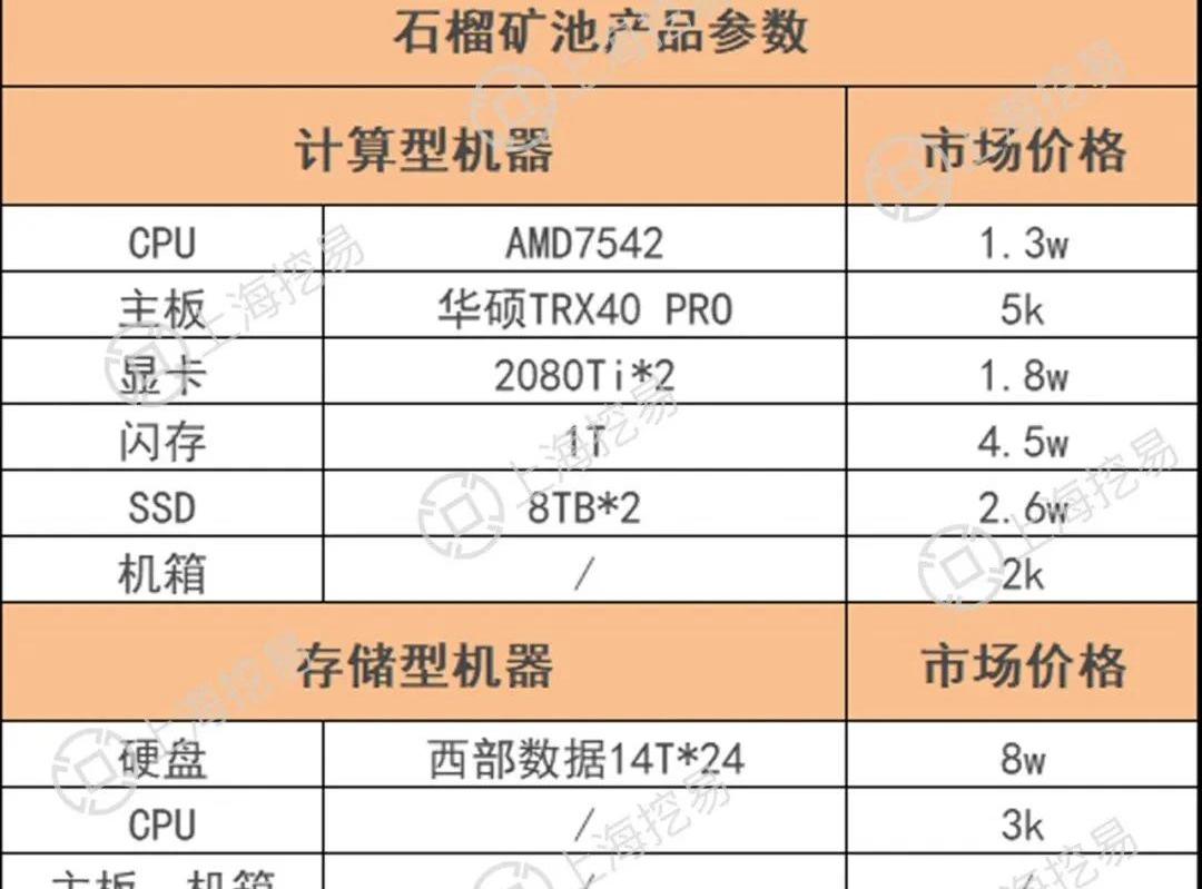 硬件计算部分成本:CPU+主板+显卡+闪存+SSD+机箱≈11万硬件存储部分:硬盘+CPU+主板+机箱≈8万计算封装速度:G/万/小时=存储/价格/24小时根据硬件部分的市场成本价格,可以再找矿机厂商提供存储速度数值。如提供存储速度的数值为4000G,在一个较透明的矿机方案中可以计算出计算部分的硬件成本。计算封装速度:4000G/11w/24h=15。还可以根据封装速度计算出挖矿的理论日收益和矿机填满存储时所需要的时间。