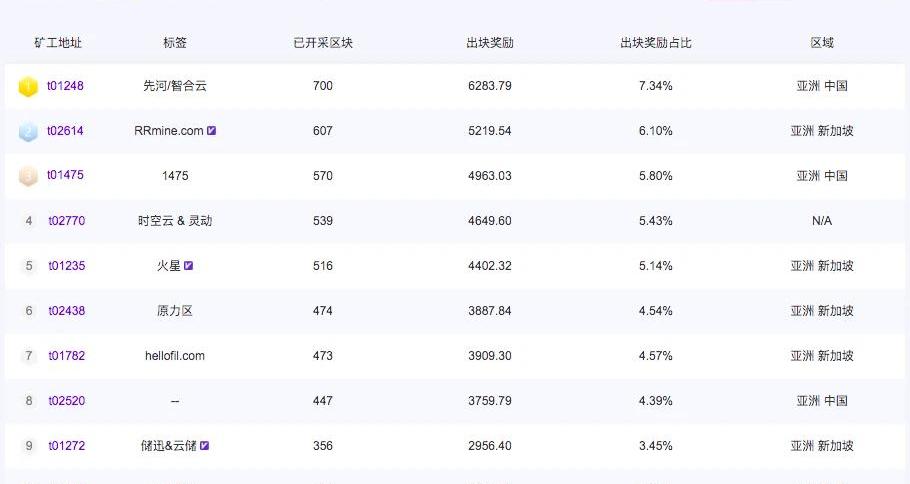 目前有效算力排名前三的分别为:t01475(1475)以3.06 PiB暂居第一,t01248(先河/智合云)以2.99 PiB位居第二,t01235(SeedPlan-Mars)以1.88 PiB位居第三。