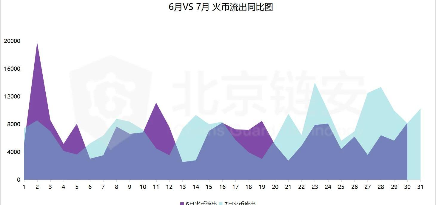 从整个7月,即7月1日到7月31日来看,币安交易所流入391364.96BTC,流出376306.89BTC,净流入15058.07BTC,与2020年6月的-3697.63BTC净流入相比由净流出转为净流入,整体上涨507.24%。