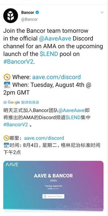 BancorV2能发挥它曾吹下的牛,那么BNT就会爆。LINK交易对在BancorV2上有不错的表现,但毕竟是个例。如果Bancor上线20个池子,都有LINK这样的表现,那么就可以叫板Uniswap了。BancorV2即将上线LEND池子。昨晚Bancor和Aave做AMA,为即将到来的LEND登陆BancorV2做宣传。