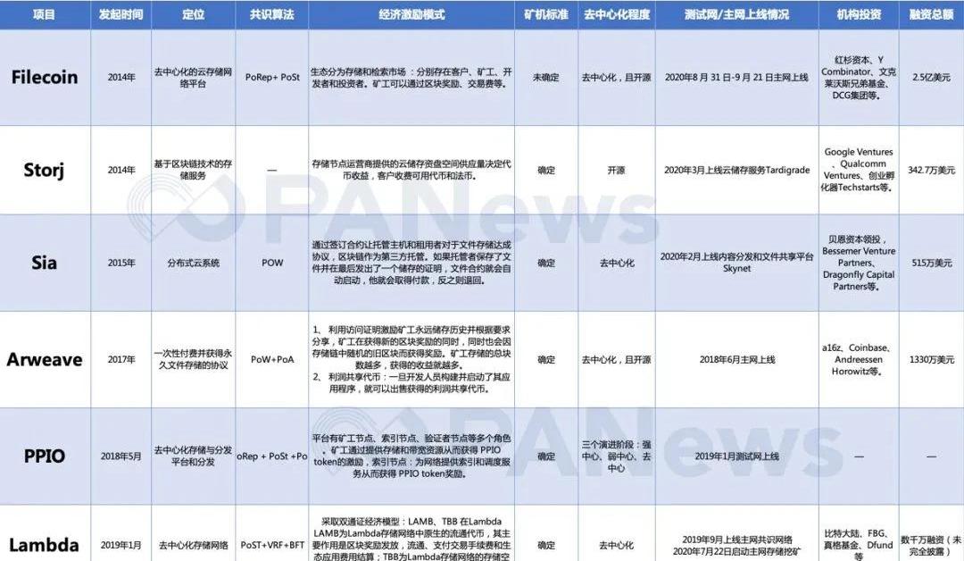 PANews注意到,在上述5个项目中,Sia是落地较早的项目之一,可让云储存更安全、更快捷、更低成本。据了解,Sia通过分布式网络加密和分发文件,让用户通过私钥来管理其数据隐私。这种分布式储存方案大大增加了数据的可扩展性和隐私性,缩减交易成本。要知道,当前主流的中心化云存储提供商要远高于这一数字,如苹果需要每月22美元/T。但由于Sia采用的是PoW共识机制,这不仅会大量消耗算力和电力,还存在双花攻击问题。不过,目前Sia已经更新了3个版本,每一次升级都会带来新的技术突破,或许Storj将代表另一种落地的方案。Storj是个面向金融应用的智能合约平台,通过数据切割和分布式存储,因此其安全性高,且成本低。从理论上而言,节点越多,安全性则越强。另外,Storj的私密性更强,且令人赞叹的是,其在推出短短半年内就实现落地。然而,由于Storj没有自己的链,所以只能依赖以太坊网络来支付Gas费用,所以一旦拥堵,商业落地难度就会很大,且用户体验差。Arweave在一定程度上补齐了市场需求,这使得主打“一次付费,永久存储,永不丢失更改”概念的Arweave得到了a16z等顶级机构的青睐。该项目通过永久网络的存储解决方案,利用区块链不可篡改的特性,直接把内容写入区块进行存储,以实现所谓的永久存储功能。目前,Arweave的产品已完成开发,且其与IPFS兼容,在IPFS上构建的开发人员可以无缝过渡到Arweave。随着Filecoin主网来临,或将让其在上线热潮下狠狠刷出一波存在感。但Arweave的成本过高、节点数量少、实际应用场景过窄等问题使得其前景被打上一个问号。和Filecoin比较近似,PPIO也使用了PoRep和PoSt这两种更为严谨的算法。Filecoin是这个混合共识机制的提出者,在Filecoin的白皮书里,这两个证明算法的过程占据全文70%以上。不过,但PPIO还自创了PoD,主要用于证明多点数据下载。令人惋惜的是,PANews了解到,PPIO已转型云计算。而无论是融资总额,还是估值,Filecoin独占鳌头。在外界看来,Filecoin有机会成为巨型价值捕获者。“Filecoin所在的领域就是‘区块链的土地房子’。区块链上的数据‘生命’需要有安身立命的地方,这就需要这些‘土地和房子’提供支持,也就是说,Filecoin为代表的分布式存储属于区块链的基础设施,是区块链‘数据生命’的承载者。”蓝狐曾指出。目前,Filecoin项目体量巨大,资金充沛,生态系统完备。一旦落地,将快速弥补中心化存储市场的不足。不过,其挖矿硬件要求较高,且对硬件的运维能力要求更高,无法保证普通用户的参与度。与IPFS+Filecoin的系统结构非常相似,Lambda也是通过存储网络+区块链激励网络的方式来构建其系统。不过,Lambda没有Filecoin技术难度大,且没有其烧算力。自共识网络启动以来,Lambda共识网络已经稳定运行10个月,验证节点70+,目前块高3580000+,存储矿工1000+,交易量22000+。目前,Lambda商用存储功能也即将上线,可推动存储商用阶段。整体来看,虽然去中心化存储曾多次跳票,但已经有着多年的发展基础,且技术日渐成熟。随着Filecoin、Storj等项目研发日渐深入,去中心化存储将会迎来大规模商用时代。技术向价值跳跃,高估值何以支撑?