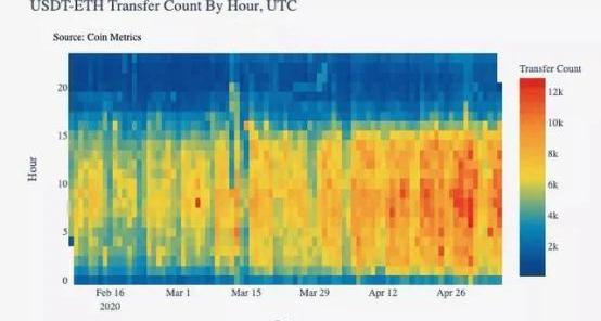 USDT的分布情况为此,即便有再多的USDT转入交易所,后者最终的货币存量仍不到总流通量的25%。与之情况相似,USDC和PAX的交易所存入量在相关币种总流通量中占比亦不及20%。三、链上交易量猛增三倍,市场热度未见起色