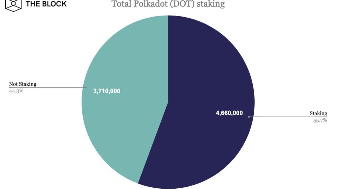 资料来源:Polkadot.js.org,Polkascan,PolkastatsTheBlockResearch按照目前的设计,Polkadot现在共有837万枚DOT代币的供应量。不过,大部分供应量尚未被代币销售参与者认领--截至目前,共有1693人认领。在被认领的代币中,已经有466万个代币被质押,占其目前总供应量的55.7%。目前的投票数约占供应量的15%。关于Polkadot面额的投票
