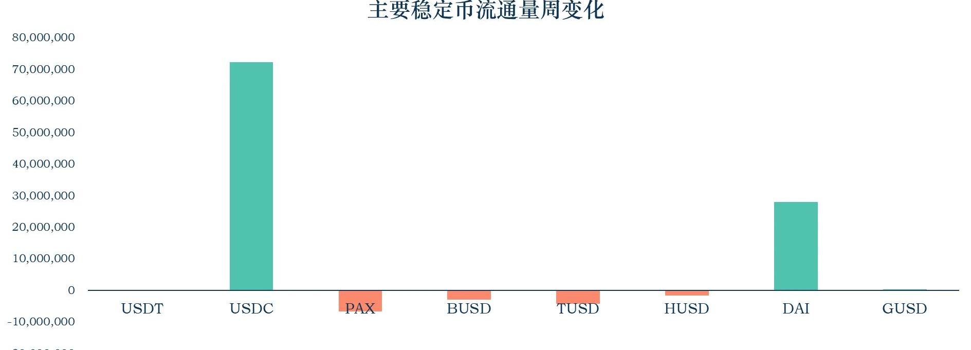作者:MYKEY研究员蒋海波为帮助加密市场参与者对稳定币发展状态保持更新,我们推出MYKEY稳定币报告,分享我们对稳定币发展状态的解读、对其发展趋势的分析。期待与同业保持交流,共同探索稳定币的发展前景。快速预览上周,USDC的流通量增加7230万,市值达到11.11亿美元。DAI的流通量增加2791万,市值达到2亿美元。USDC和DAI的流通量最近持续增加,USDT暂停增发。经过理论计算,1美元的DAI最多可以产生1.82美元DAI和1.36美元ETH的存款,以及0.82美元DAI和1.36美元ETH的借款。因此,在DAI和ETH之间反复存款、贷款,理论上最多可以产生3.18倍的存款和2.18的借款。一、稳定币数据概览