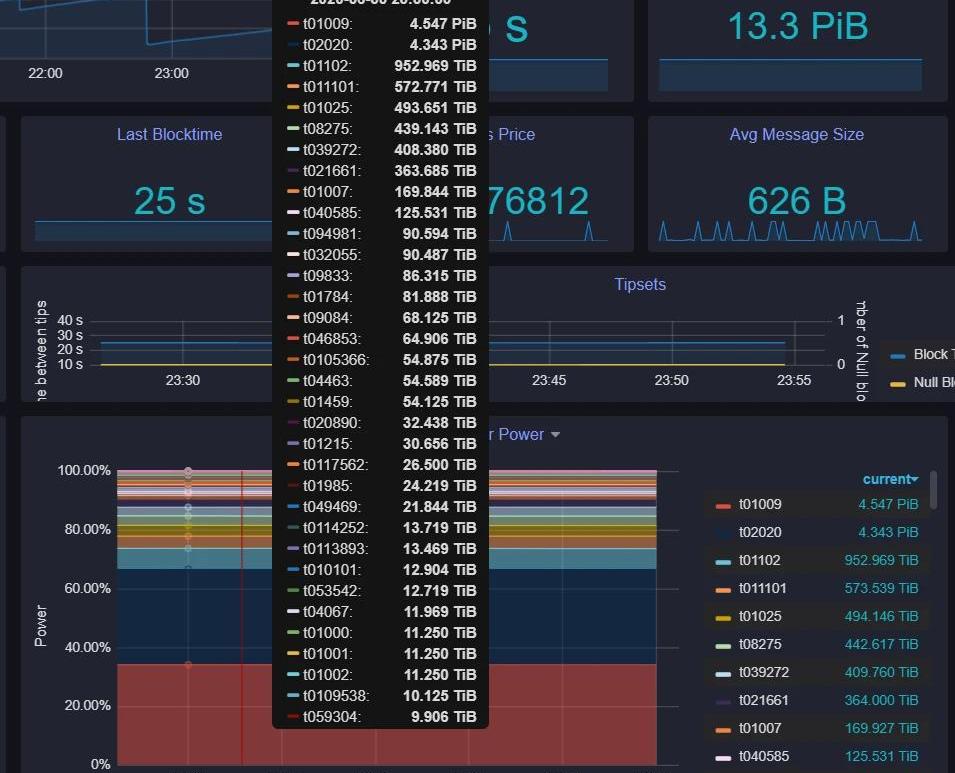 “中国是这一领域绝对的巨无霸。”IPFS原力区张成龙告诉DeepChain深链。截至目前,在已知的全球前10大矿工节点中,除了排名第8的节点身份不明外,其余9个矿工节点均来自中国。“不仅如此,包括原力区在内的中国矿工节点们也在纷纷布局海外。”张成龙告诉DeepChain深链,“等400万FIL矿工奖励结算的时候,就能看出中国节点的布局成效了。”有利益的地方,就有江湖和纷争。前几个月还一团和气,现在越来越剑拔弩张。这是张成龙对当下Filecoin生态的印象。“现在的Filecoin生态,像极了美苏争霸的冷战时期。”Filecoin矿工老郑这样向DeepChain深链描述。t01009和t02020两强相争,前十名的矿工蓄势待发,剩下来的矿工则“重在参与”。这是老郑眼中的Filecoin江湖格局。目前Filecoin生态中,有效存储值总量为17.39PiB,其中,t01009和t02020两个节点分别贡献了6.29PiB和5.55PiB,占总存储值的68%。如果算上前十中另外8个节点的存储值份额,这个数字则达到了92.23%,意味着剩下的700多家矿工节点只能得到不到8%的份额。
