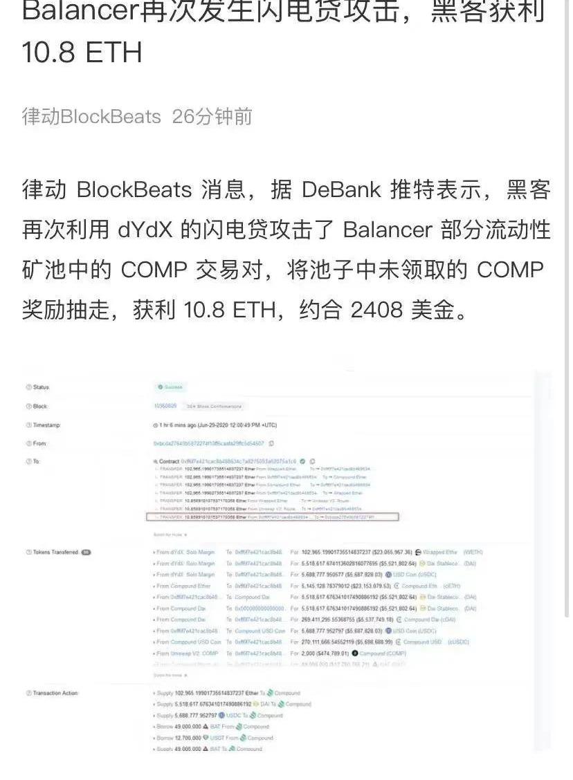 跑了一段时间,需要休养调整一下了。2、头部交易所,陆续入场COMP代币先后上架了coinbase、币安,昨天又上线了OKex,也就是说DeFi的治理代币得到一线交易所的认可,为DeFi治理代币带来的将是流量和资金。3、DeFi新项目,需要时间准备这几天陆续见到,从不同角度统计了DeFi项目的发展情况,大部分都是之前的项目。当然许多项目正在酝酿着发币,一波发币潮流也在赶来。但新的DeFi项目其实是不足的。从国内来看,粗略地统计了一下国内做的DeFi项目有:dForce、nerve、NEST、DDEX、MCDEX、For、Codex、DeFiner等。说多也多,说少也少。重大点是,做DeFi项目跟以前玩ICO、IEO的逻辑变了。要实打实的拿出东西来,产品、链上应用、故事,三者都得有才行,具体逻辑见《从山寨币、ICO到DeFi,币圈玩法发生了这些变化》。做好了这些,DeFi的故事才能支撑起来,治理代币的价格才能有支持,但这还不够,还要做好安全,以防被攻击的风险,比如balancer刚搞事没多久,就被攻击了,还连着两次。