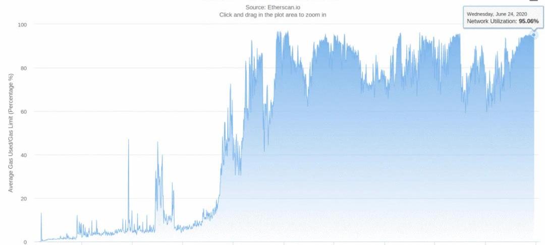 Etherscan的网络利用率图表清楚地表明,网络利用率正在增长,超过95%。随着网络利用率的提高,交易的竞争也将加剧。因此,看到天然气价格上涨,最终交易费用增长也就不足为奇了。