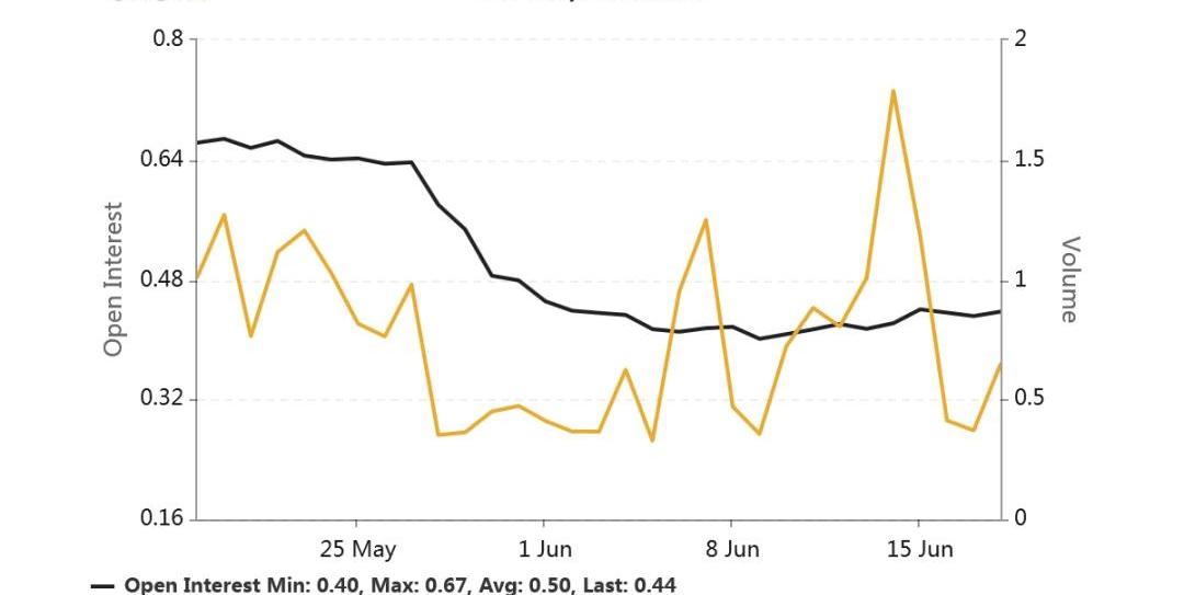 Put/CallRatio持仓量之比为0.44,再次走低。
