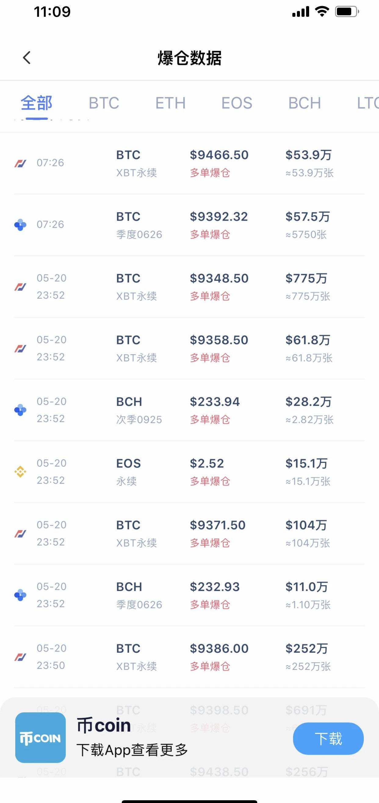 根据币coin图标显示,绝大部分投资者属于多单被爆,24小时多单爆仓达4.83亿美元,5月20日的爆仓金额也创下了近十日爆仓金额新高。不少投资者感叹:“比特币仅仅500美元的跌幅就让这么多资金爆仓了,往日上千美元的跌幅也达不到这种效果啊!”其中大额多单不少,其中最大单笔爆仓单发生在BitMEX-ETHM20,爆仓金额高达4778万美元。