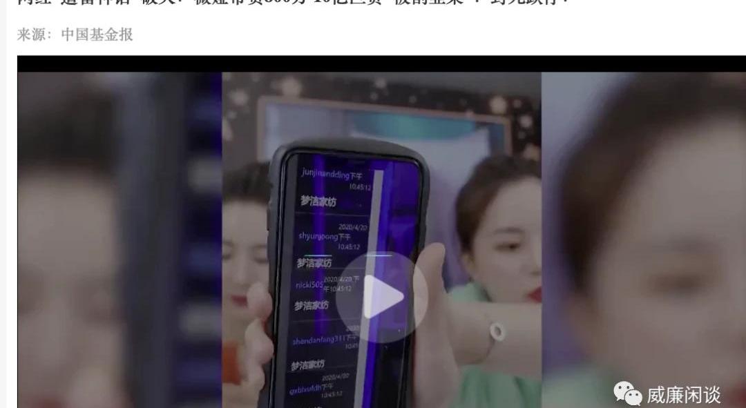 虽然现在世界五百强企业人们也不怎么关心了,因为传统的评价方式已经评价不了现在世界上真正的巨头企业,也就是互联网巨头们。所以人们现在更关注市值、用户和规模,盈利多少,提供了多少就业这类的,并没有那么关心了。我估计00后已经不会觉得沃尔玛是个多么巨型的公司了吧?他们会觉得腾讯阿里是巨型公司,而不知道沃尔夫家乐福丰田这些曾经的世界巨头们。再往后十年,如果一个企业不是互联网企业,那估计在年轻人心中就没有什么排面了。正如我们那个年代互联网公司没什么排面一样。我还记得零几年的时候,盛大的陈天桥和网易的丁磊都做过全国首富,那时候“大人们”的评价就是这些都是做游戏残害青少年,做“电子鸦片”赚钱的。那时候好公司都是外企,搞金融的好,四大会计师事务所是顶尖青年的目标。时代总是变得很快,十几年前毕业生梦想去的地方,现在已经没什么人愿意去了。十几年前听都没听说过的东西,现在才是毕业生真正的目标。或许未来的毕业生最想去的地方叫“数字经济”之类的企业,谁知道呢?2大家还记得18年流行的说法“古典互联网”吗?19年的“古典区块链”吗?虽然现在回头看这都是嘲讽的玩意儿,但是当时的确是流行了一时,人们津津乐道。今年没等到币圈有什么新的“古典嘲讽”,却等到了我们自媒体行业的名词“古典自媒体”,意指不做视频或者短视频的自媒体。尽管这种说法估计又很快就要嗝屁了,但是作为有自媒体属性的我,的确是对视频、短视频还有直播感到焦虑。很多人让我也搞搞直播啥的,但是我真不知道有啥能聊的。而且直播一晚上废话一堆扯了半天,内容量还不如一篇文章来的实在,这么做我是觉得对不起观众的。我之前专门写过一篇文章建议各位如果是为了学东西或者汲取内容养分,还是得多读文章。当然,纯娱乐的话当然还是视频有意思的多啦,我每天也会刷20分钟左右的短视频,以免跟不上时代。这个时代就是这样,一不小心就会跟不上。你特别焦虑,但是也特别容易短视,因为焦虑,所以着急,所以短视,所以没法冷静分析未来,十分合理。所以在这种匆匆忙忙的浪潮中你还是得静下心来,冷静思考你的事业,还有你的投资。之前很多人就因为着急跟上直播带货的浪潮,非常着急地去追捧A股的一只股票叫“梦洁股份”。他们炒作了和薇娅合作,然后高位套现割出了几个亿: