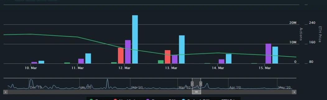 如果以法币背书的稳定币价格上涨,套利者就会使用法币与发行方兑换更多稳定币。之后,套利者可以按当前较高的市场价格将这些稳定币卖出,从中赚取差价。只要价差大于将稳定币兑换成法币的成本,套利者就会持续套利,直到稳定币的价格非常接近美元为止。正如我们在另一篇文章中解释的那样,Dai无法形成这种套利循环,因为Dai是通过超额质押生成的。套利者卖出Dai之后,还有多余的质押品留在系统内。这部分质押品会带来波动性成本和资本成本,法币背书稳定币的套利就不存在这个问题。更糟糕的是,Dai在市场震荡期间往往逆市场而动。寻找避险资产的交易员对Dai的额外需求需要由CDP持有者追加质押物才能满足。但由于质押品贬值,CDP投资者需要增加质押品,或者偿还一部分Dai贷款来避免引发强制清算。因此,在市场动荡期间,Dai的供应量会骤减,但那时Dai的需求量恰恰是最大的。