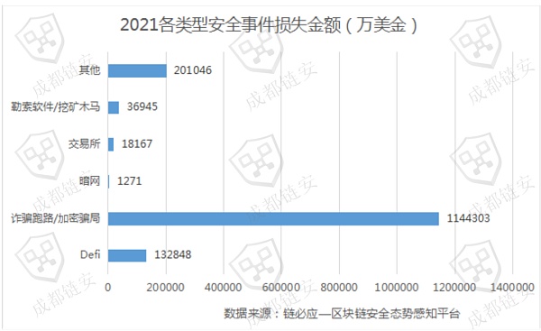 值得注意的是,据成都链安安全团队历年数据统计,2018年区块链生态经济损失超20亿美元,2019年区块链生态经济损失超60亿美元;2020年区块链生态经济损失超121亿美元,加上2021年超153亿美元的经济损失,可见这几年来,区块链生态经济损失越发严峻。