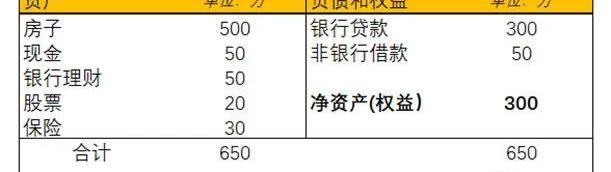 2.努力工作,增加收入经过3年的努力工作,这个家庭新增了50万现金,假设房子和金融资产的市值不变。这个时候总资产为700万,负债依然是300万。