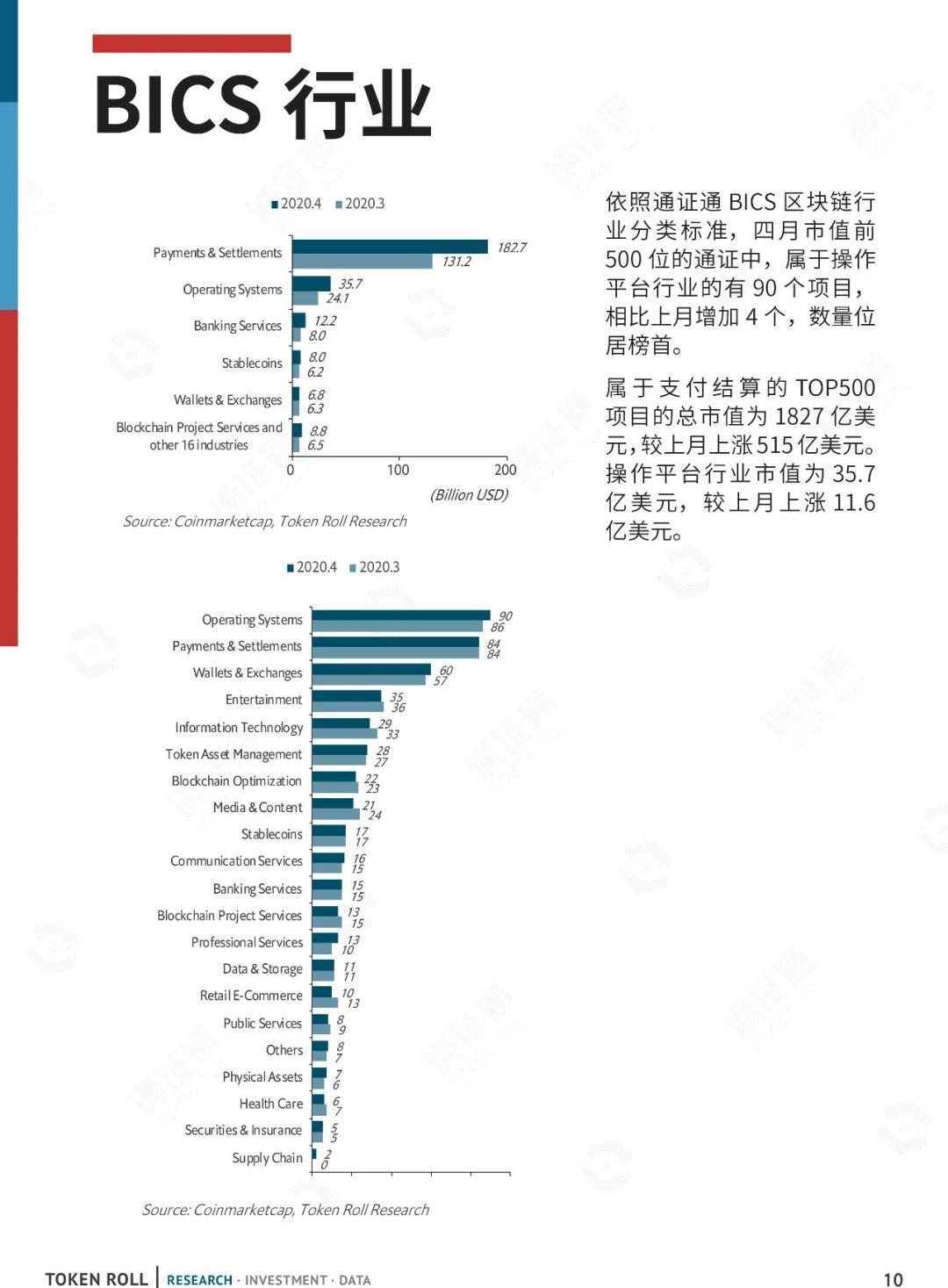 截至2020年5月5日,全球数字通证总市值为2550.72亿美元,相比期初上涨672.4亿美元,涨幅为35.8%。四月日均成交额为1338亿美元,较上月下降173亿美元,跌幅为11.4%。2020年4月16日,央行DC/EP在农业银行、中国银行的客户端试运行。苏州相城区将首先进行DC/EP试点,部分公务员的交通补贴将以交通补贴的形式发放。DC/EP是由央行发行、国家信用支持的法定数字通证,是国家法币的数字化形式。央行DC/EP的发行,能够提升货币政策效率、促进人民币国际化、捍卫国家数字金融主权。本月,通证通编制的20个BICS二级行业指数全面上涨。其中供应链行业指数涨幅达到96.9%,项目服务行业指数达到57.9%。而T10、T10X指数仅上涨34.8%、34.9%,落后于BTC以及大部分行业指数。四月BTC难度与日均算力大幅增加,接近前高,七日平均算力达到约119.4EH/s,但考虑到容纳了其他PoW通证的多余算力、减产后矿工收益将大幅降低等因素,BTC算力短期内或将达到饱和。BTC平均活跃地址数增加到77.5万个,为近三个月最高,BTC的90日均NVT比率约为72.9,表明近期BTC基本面持续转好。