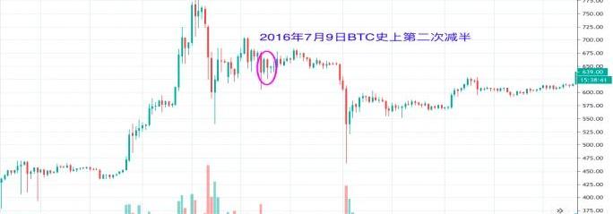 图4:2016年7月9日BTC史上第二次减半前后-Tradingview截图来自TradingviewBTC/USDT现货价格K线图,比特币价格在第二次减半期间并未出现大的变动,而是在减半时间发生前的5月底至6月中旬,币价率先完成了一波快速拉升,而减半结束后,币价反而迎来了一波杀跌行情,可谓利好出尽是利空!反观当前币价行情,正值比特币迎来史上第三次减半一周前的时间节点,币价在经历312的大跌后,截止发稿,持续的反弹上涨几乎已收复全部失地。对比前两次减半前后行情走势,短期看,此刻的币价在减产正式来临前有望见顶出现回落,减产结束后币价同样有进一步下跌的可能,建议投资者关注减产事件的同时,注意相关币价短期回调下跌风险。但结合前两次减半长期走势看,比特币在第三次减半行情的短期刺激结束后,币价经过回调后可能进入新一轮的上涨周期。风险提示:本文章不构成投资建议,投资有风险,投资应该考虑个人风险承受能力,建议对项目进行深入研究,慎重做出自己的投资决策。