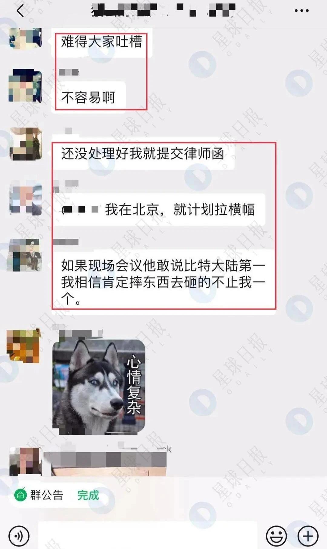 在谈及群中其他成员的维权措施时,林凯春表示,目前大家还是各自为战的状态。“里面不少是大陆中级以上的客户,和大陆的联系也不少,出了事第一时间肯定是协商,这个环节估计不少都正在进行着。”“二来,群里有些人是矿场主,出问题的是客户的矿机,但他也得了解是怎么回事、好向客户交代。但具体怎么维权,恐怕要客户自己去想了。我们这种级别的矿工,在朋友圈控诉后,大陆的相关高管愿意拉群聊聊,其他散户恐怕连这个机会都没有。”一边,林凯春们的维权还在继续,另一边,矿机商在努力卖新矿机。在4月21日“丰水节”线上活动中,比特大陆创始人吴忌寒现身推荐蚂蚁S19,并坦承此前矿机存在不小问题,同时呼吁矿工“再给比特大陆一次机会”。“比特大陆的机器并不是一直领先,背后的原因,S9之后,我不再参与研发,公司按照詹克团以自我为中心的方向走……导致非常广泛的抱怨,损坏率非常高,对恶劣环境的适应力不够……尤其是T系列的矿机,在市场上的口碑之差是出了名的。我去年回来后,重新以客户为中心,在S19的研发上,把诡异的设计思想去掉,进行系统性的重新设计、校正……S19的稳定性和售后服务会有大幅度提升。……也恳请广大矿工朋友再给比特大陆一次机会。中间经历的一些曲折,正是因为我们忘掉了客户,走向以自我为中心的陷阱中去……”林凯春看到这番话后苦笑了下。在他看来,如果比特大陆还敬重客户,第一步要做的就是对历史问题负起责任。在维权群之外,吴忌寒这番恳切的言辞也招来了不少讨伐。