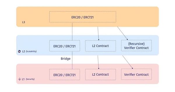 L3 可以带来超高的可扩展性、更好地管理各种需求的技术堆栈、实现隐私交易等,同时又维持由以太坊 (L1) 提供的安全保障。它所采用的递归概念可以扩展到分形多层解决方案的附加层中。