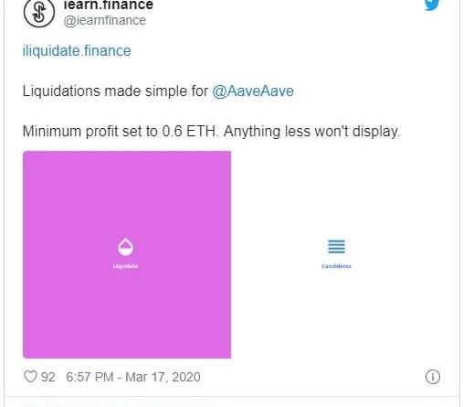 这次加密危机给我们上了很好的一课。总体而言,我们对DeFi协议的执行情况十分满意,但减轻此类极端事件,还有上升空间。接下来的几周,我们会通过以下方法来改善清算人的生态系统:发布清算用户界面。虽然正常情况下,用户无法通过用户界面清算,但在网络极度拥挤的情况下,用户界面可以将非技术用户纳入到清算人的网络中来。AndreCronje发布了一个用户界面,允许Aave使用闪电贷清算。