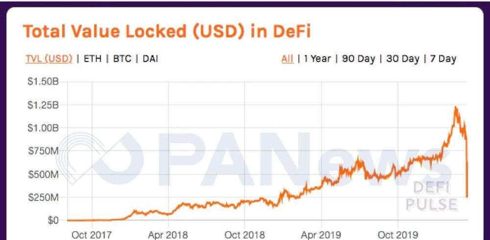 面对突如其来的巨跌,甚至有MakerDAO的开发者建议关闭协议。MakerDAO官方发布公告称,Maker协议目前状态仍然健康。没有黑客攻击,没有漏洞,也没有紧急关停计划,但尽管如此,协议仍需要进行修改。截至13日下午5时,DeFi整体锁仓额为6.28亿美元,与2月份的高点相比缩水一半,锁仓额回到了2019年年初的位置。