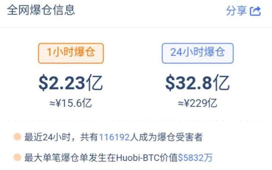 北京时间今日凌晨1点27分,Tether新铸印钞6000万枚USDT。Bitfinex首席技术官PaoloArdoino表示:“这是一笔已授权但未发行的交易,这意味着该金额将用作下一次发行请求的库存。此后,3点27分,Tether再次新增印钞3000万枚USDT。相比现货玩家,合约用户则惨痛许多。币Coin数据显示,昨日18点30分至19点短短半小时,全网总计爆仓5.65亿美元,爆仓人数19023人;过去24小时,全网总计爆仓超过32亿美元,共有11.6万人成为爆仓受害者,其中最大单比爆仓发生在火币,仓位价值5832万美元。