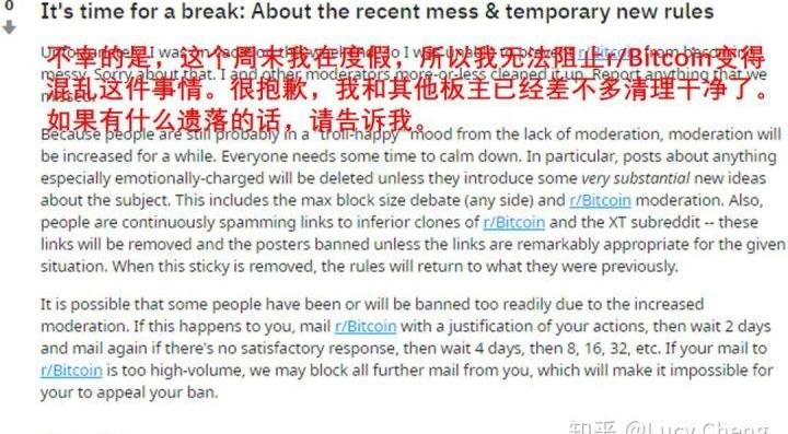 截图源自:theymos在Bitcointalk上面的用户界面theymos是比特币核心开发团队的一员,从比特币诞生之初便参与项目的运行,在Bitcointalk论坛内活跃至今,早期阶段还多次与中本聪共同讨论比特币的相关问题。根据Reddit网友Cowboy_Coder的说法,在2011年中旬r/bitcoin版主Atlaslgo试图出售该讨论社区的行为遭到社区强烈反对之后,这位匿名者获得了r/bitcoin的所有权。再后来不知道什么原因,http://bitcointalk.org、en.bitcoin等多个以比特币为中心的门户网站也全部收归于theymos名下。这种多个比特币讨论社区皆由一人管理的状态,引发了用户的不满与质疑;到了2015年8月theymos在各个比特币讨论网站疯狂删帖的行为更是进一步激化了内部矛盾。回溯历史我们发现该时期正是比特币扩容争端颇为激烈的阶段,当时theymos认为主推区块扩容的BitcoinXT支持者在讨论社区上的发言让r/bitcoin陷入混乱。为了停止这种分裂行为,他将所有关于增加区块大小以及抨击BitcoinCore团队的讨论全数屏蔽,还封杀了不少表达较为激进的用户的相关账号。