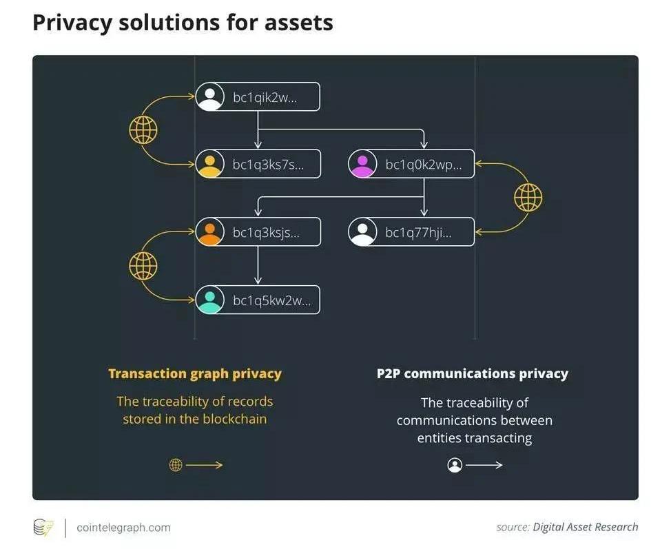当前,又许多新协议都将更多的隐私选项引入了比特币。也就是说,未来几年,比特币隐私可能仍将是一门艺术而非一门科学。一般来说,跨数字资产进行私人交易的最大问题是解决方案不够成熟。关注交易图隐私的隐私资产往往会忽视网络层隐私,反之关注网络层隐私的隐私资产往往会忽视交易图隐私。这两个方向都缺乏成熟度和使用率,这使得通过P2P网络层或区块链层的统计分析可以很容易实现交易溯源。目前,有一些项目正在努力解决这两个方面的界限。