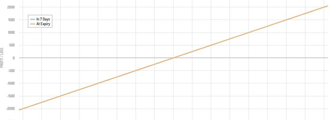 Buy9500Call@117,Sell10000Call@277如果7天后Bitcoin价格≥10000,则获得收益为277-117=160;如果7天后Bitcoin价格≤9500,则损失10000-9500+160=340;如果7天后9500<Bitcoin价格<10000,则获取收益/亏损为10000-Bitcoin价格+141。因为牛市价格趋势向上,卖出熊市价差被行权的可能性较低,而且熊市的下跌多暴跌,相比单纯卖出Put,熊市价差的可能亏损相对有限。合成期货期权的买方为权利方,卖方为义务方,如果同时将权利和义务相对的两个期权的相结合,能够组成为一张到期时间相同的期货合约。假设标的物Bitcoin价格10250,波动率70%,利率2%,剩余时间7天,卖出行权价10250Put,买入行权价10250Call,组合到期收益曲线如下