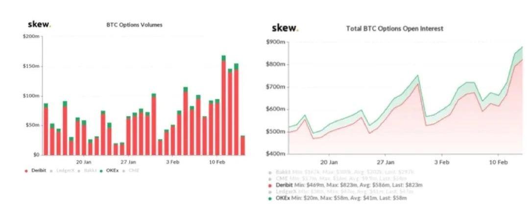 Deribit和OKEx期权交易量与持仓量数据来源:Skew合约规则