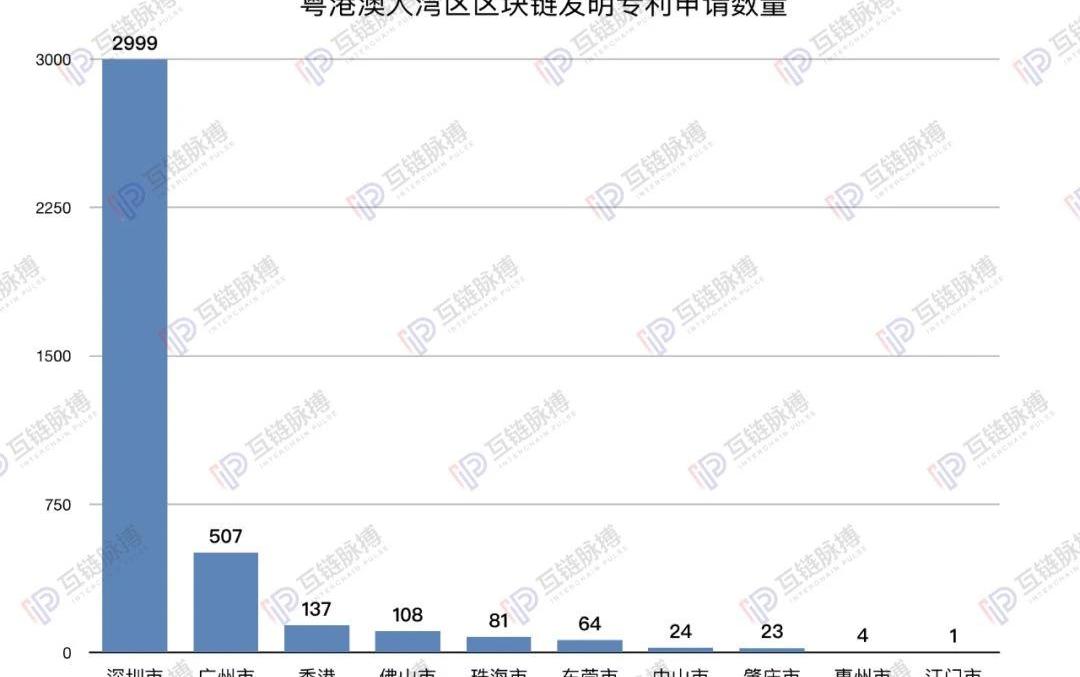 在研究机构的基础上,互链脉搏进一步关注到区块链研究成果方面,通过区块链发明专利的申请量来观察大湾区的区块链研究成果。